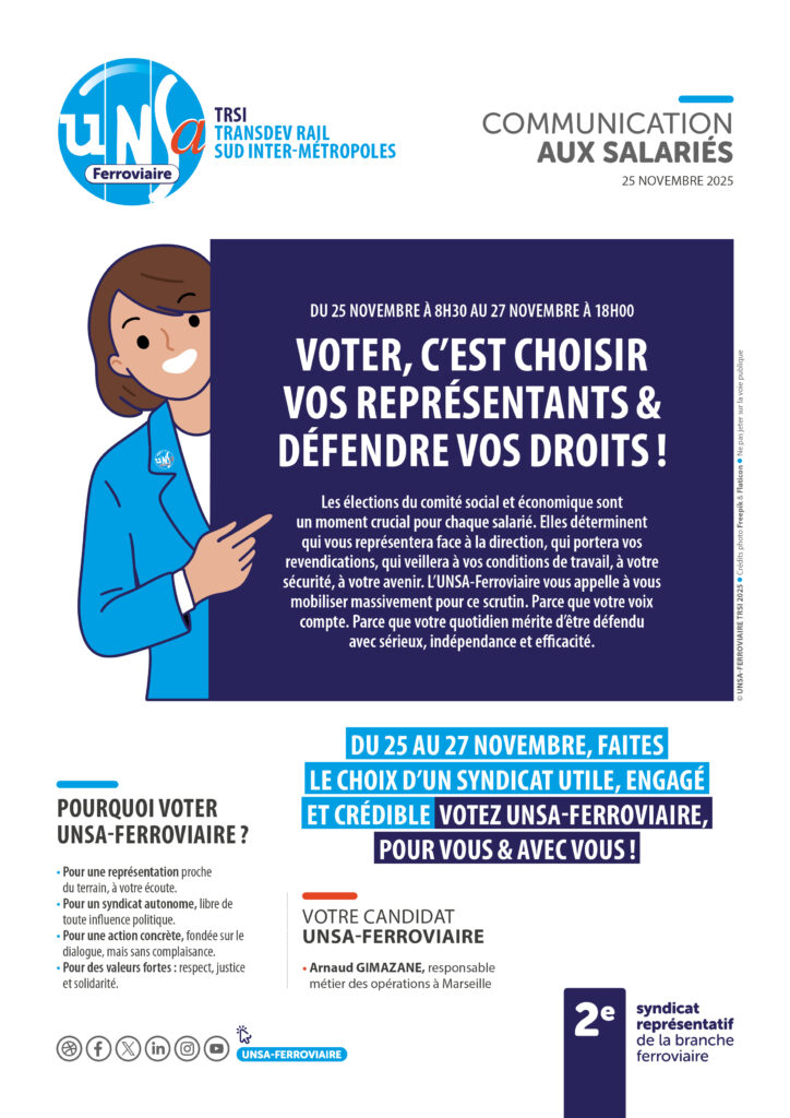 Élections au CSE : du 25 au 27 novembre, je vote UNSA !