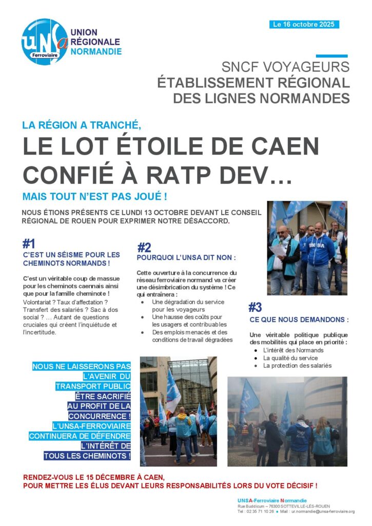 L’UNSA-Ferroviaire ne laisse pas tomber les salariés SNCF qui seront concernés par cette concurrence et qui pourraient subir la perte de marché.