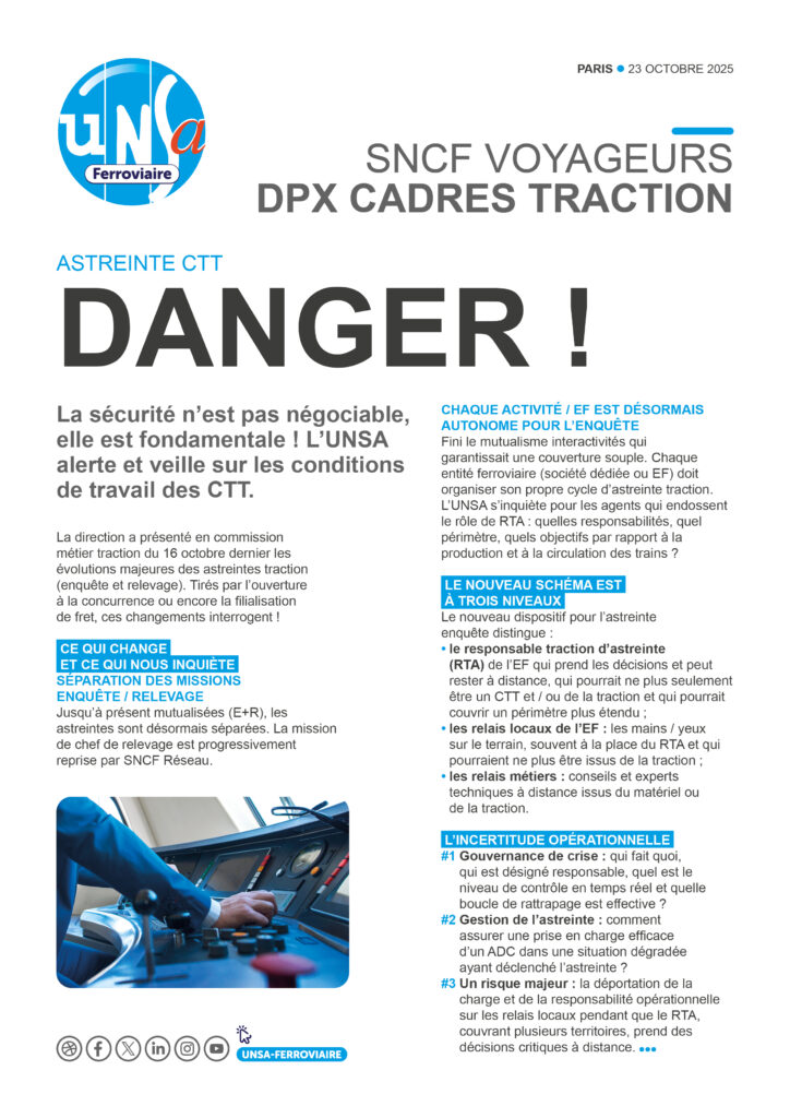 Des évolutions de l'astreinte CTT : pour l'UNSA, la concurrence ne doit pas se faire au détriment de la sécurité !